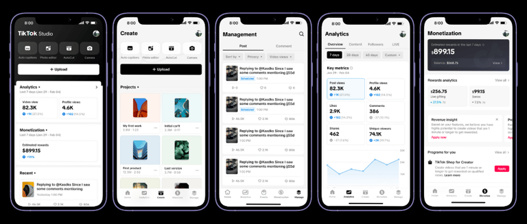 TikTok introduced TikTok Studio, a new comprehensive creation and management platform equipped with tools creators can use to create, edit, upload, manage, and analyze their TikTok account and content performance. TikTok Studio replaces Creator tools within the TikTok app as well as the Creator Center webapp, but creators can continue to access the full suite of tools and resources by visiting www.tiktok.com/tiktokstudio on a desktop web browser. Additionally, to provide creators with a more comprehensive experience*, TikTok Studio will also test as a standalone app.